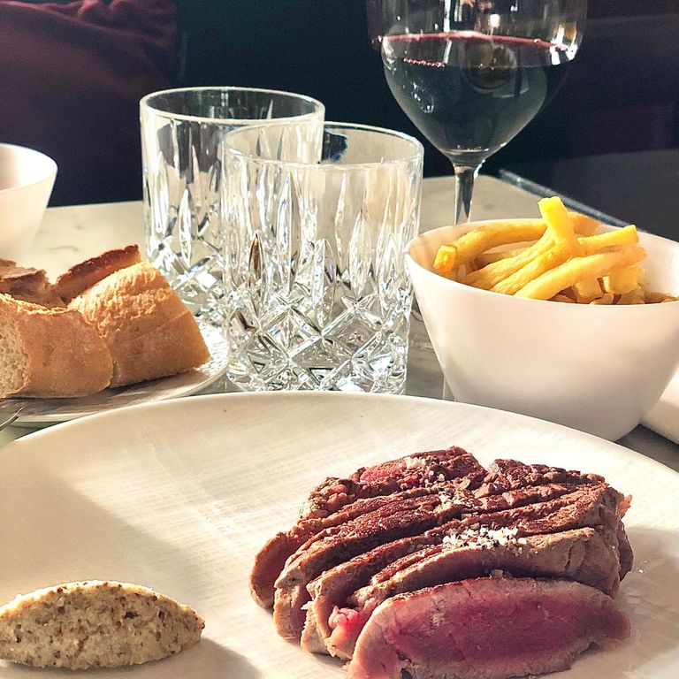 200 gr. de rumsteak de la race locale « Rouge des Prés », servis avec un beurre noisette « spécial » et une moutarde de pleurotes Bio cultivées en caves dans le Saumurois.